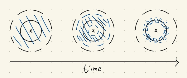 If we then consider the gravitational field due to the circle, we can see that it’s nonzero for all points except the origin. Following the vector field, it’s clear that with zero initial velocity, every point in the disc except the origin is going to end up at some point in the circle. There’s an issue in that there’s no upper bound to the time to which the points end up in the circle. I’m not sure how that could be resolved, perhaps by magnifying the field strength such that it is either 0 or \(\geq c\) for some small constant \(c\) across the disc.
